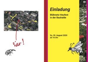 Schon bald ist es soweit! Um den ersten Blühnetz-Sommer gebührend zu feiern und unsere Erfahrungen auszutauschen, findet am Sonntag, 30. August 2020 ab 16 Uhr ein kleines Quartierfest statt. Wo? Auf dem grossen Parkplatz (siehe Karte auf der Einladung).