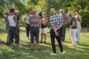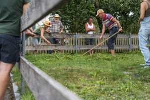 Gebührend gefeiert wurde er, der erste Blühnetz-Sommer. Mit Speis und Trank, mit einer Tour des Jardins und wertvollen Inputs von Rosmarie Champion, mit Senseworkshop von Lilian, mit einem kleinen Heuparadies und skulpturalen Kreationen, mit in Bierteig fritierten Gartenkräutern, mit angeregten Diskussionen, viel Sonne, Wärme und Freude.